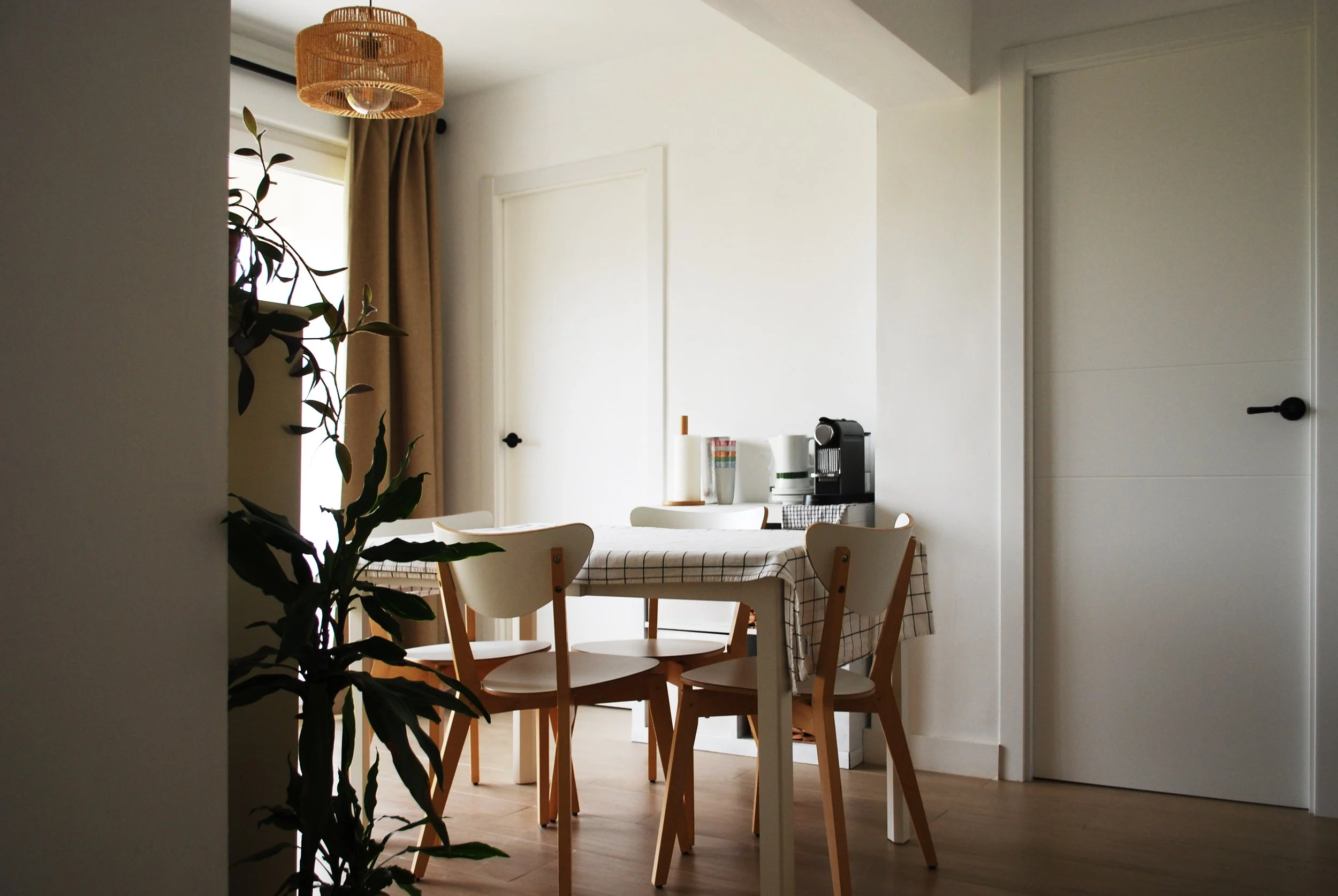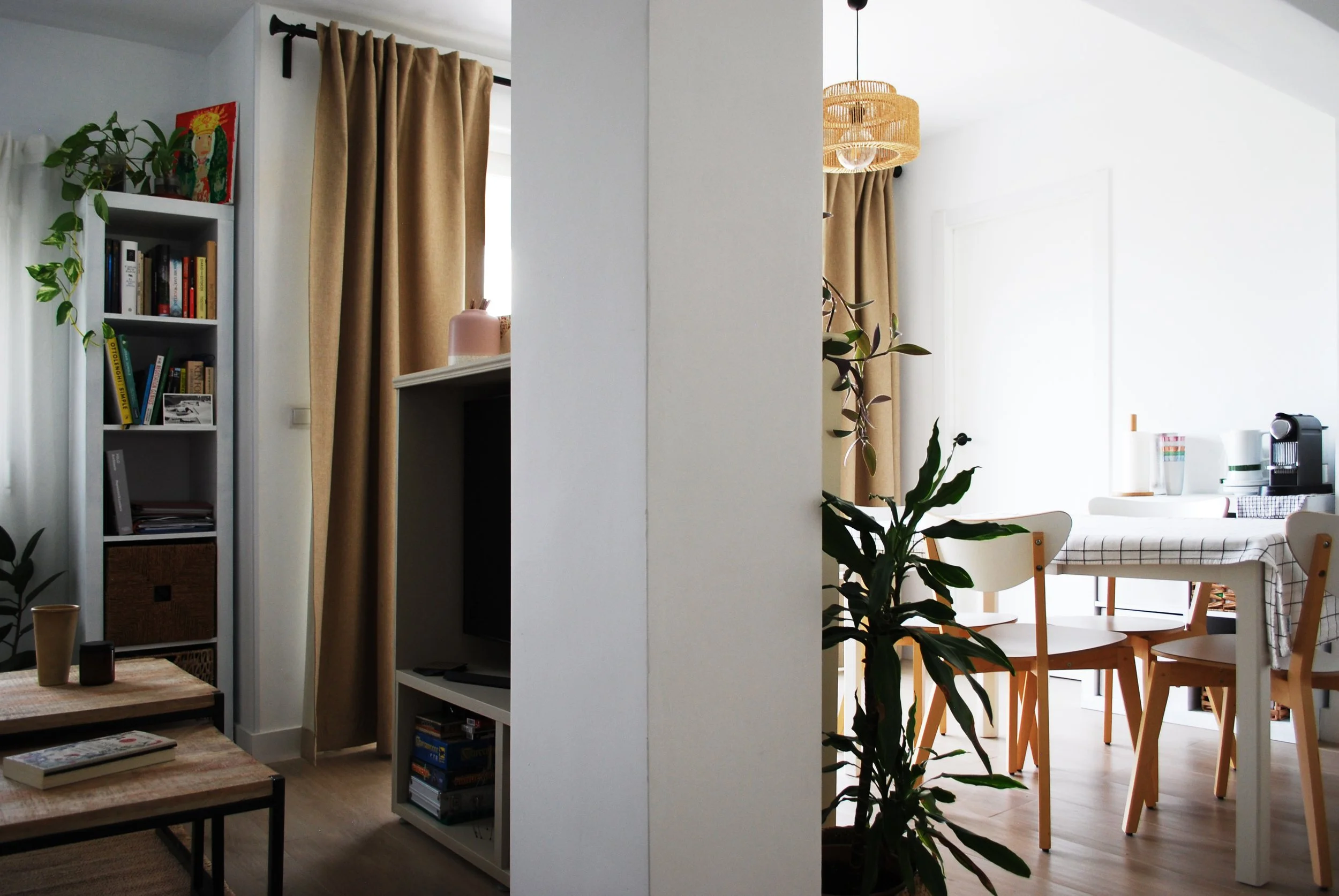 ¿El mayor reto? Conseguir que un espacio de 46 m², oscuro, lleno de estancias de tamaño insuficiente y que no aprovechaba ni la luz ni las vistas se convirtiera en una casa acogedora, luminosa, con un bonito balcón y llena de vegetación dónde esta pareja iniciaría su nueva aventura.